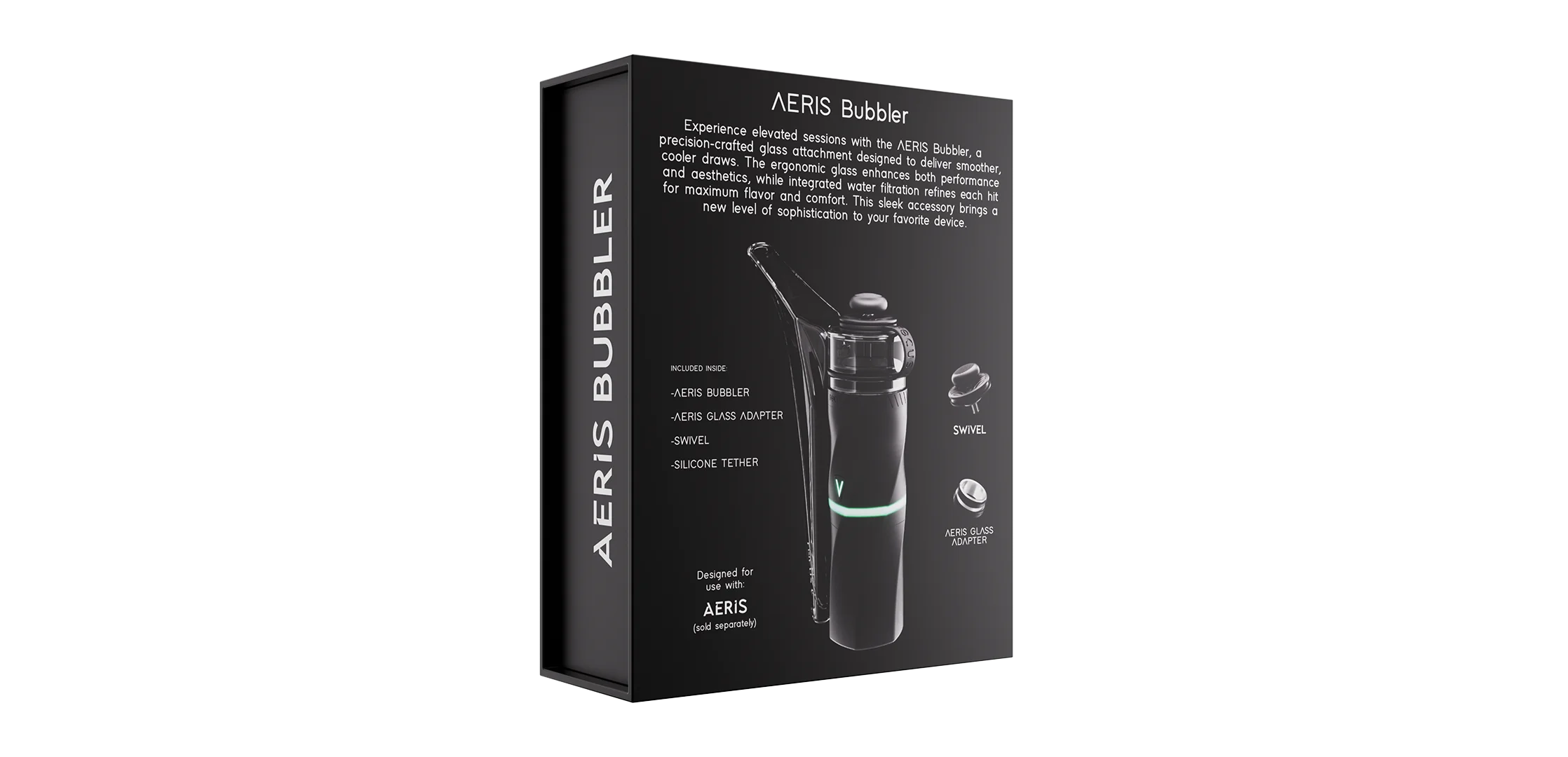 The AERIS Bubbler brings water percolation to the AERIS, delivering smoother draws, cooler vapor, and a more balanced flavor profile. Each unit includes a color-matched, Patent Pending SWIVEL™, enabling precise directional airflow and effortless control over every pull. Designed for a seamless fit and understated performance, it elevates the AERIS experience without adding complexity—allowing you to stay fully immersed in the clouds.